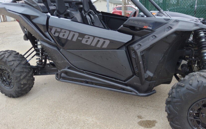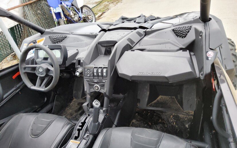 Engine Type: Rotax ACE (Advanced Combustion Efficiency) Triple-cylinder engine Displacement: 900 cc Cooling: Liquid Cooled With Integrated Intercooler Fuel System: Turbocharged, Intelligent Throttle Control (iTC) with Electronic Fuel Injection (EFI) Front Suspension: Double A-arm with sway bar, Trophy truck inspired arms Front Brakes: Dual 262 mm ventilated disc brakes with hydraulic twin-piston calipers Front Tire: Maxxis Bighorn 2.0 30 x 9 x 14 in. (76.2 x 22.9 x 35.6 cm) Rear Suspension: 4-link Torsional Trailing-arm X (TTX) with sway bar Rear Brakes: Dual 248 mm ventilated disc brakes with hydraulic twin-piston calipers Rear Tire: Maxxis Bighorn 2.0 30 x 11 x 14 in. (76.2 x 27.9 x 35.6 cm) Dry Weight: 1877 lb. (851 kg) Wheelbase: 135 in. (342.9 cm) Front Travel: 22 in. (55.9 cm) Rear Travel: 22 in. (55.9 cm) Ground Clearance: 16 in. (40.6 cm) Fuel Capacity: 10.5 gal. (40 L) Rack Capacity: 150 lb. (68 kg) Transmission: Quick Response System X (QRS-X) CVT with high airflow, L / H / N / R / P Drive System: Lockable front differential with exclusive Smart-Lok technology. True 4 modes traction system: 2WD / 4WD with front diff. lock / 4WD TRAIL ACTIV / 4WD TRAIL Speedometer: Standard Digital Tachometer: Standard Digital Odometer: Standard Digital Colors: Triple Black