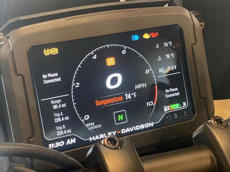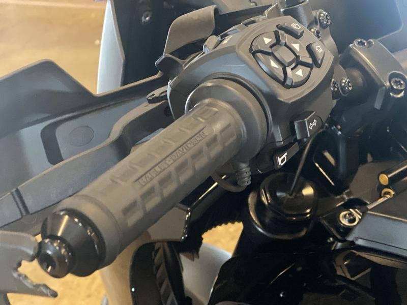 • 6.8 inch viewable area TFT display with speedometer, gear, odometer, fuel level, clock, trip, ambient temp, low temp alert, side stand down alert, TIP over alert, cruise, range and tachometer indication BT capable – phone pairing to access phone calls, music, navigation (H-D App ONLY)