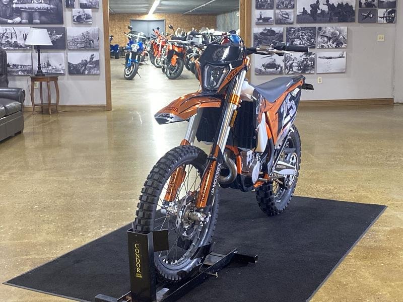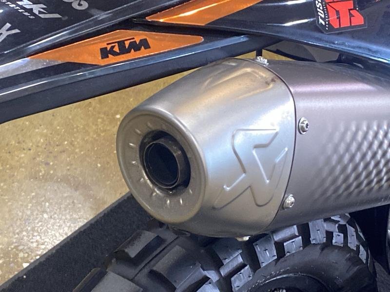 Low miles, road legal, and decked out with a custom graphics kit and an Akro pipe. Topped off with an oh-so-comfy KTM Powerparts seat. This thing is ready to commute to work, using single-tracks of course, or ready to shred on your next backwoods weekend. Come down to Woodstock KTM Triumph and throw a leg over this bike and so many more, new and pre-owned, technician serviced, awesome metric machines! Give us a call and set up your test ride today! 815-337-3511
