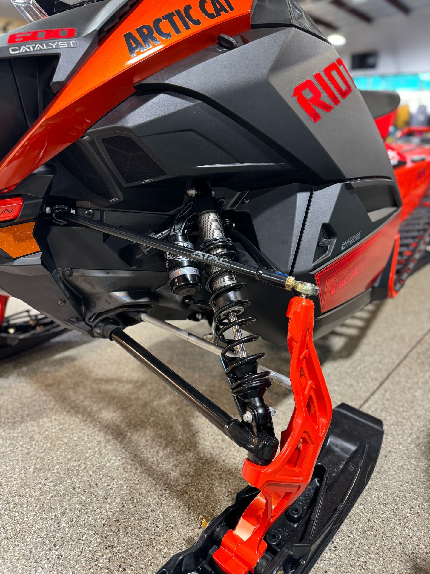 • LFS+ front suspension – The LFS+ front suspension features long suspension travel and wide, 1097 mm ski stance, providing the Lynx Rave trail sport snowmobile with great control and flat cornering capability.
