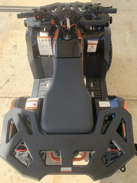Dual front headlights, single rear tail/brake light, front and rear racks, safety flag mount. The Kayo Bull is covered by a 6-month limited warranty