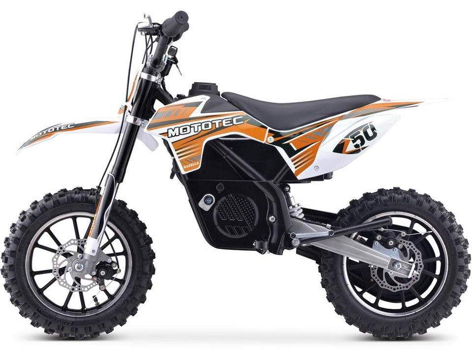 The Venom MotoTec24v 500w GazellaElectric Dirt Bike is the ultimate kids ride! Great for driveway and backyard fun, cruise over bumps and speed through dirt trails with ease. Comes standard with front & rear suspension, front & rear brakes, parent selectable speedsand large knobbytires.The battery can be removed and charged separate from the bike for nonstopfun.
